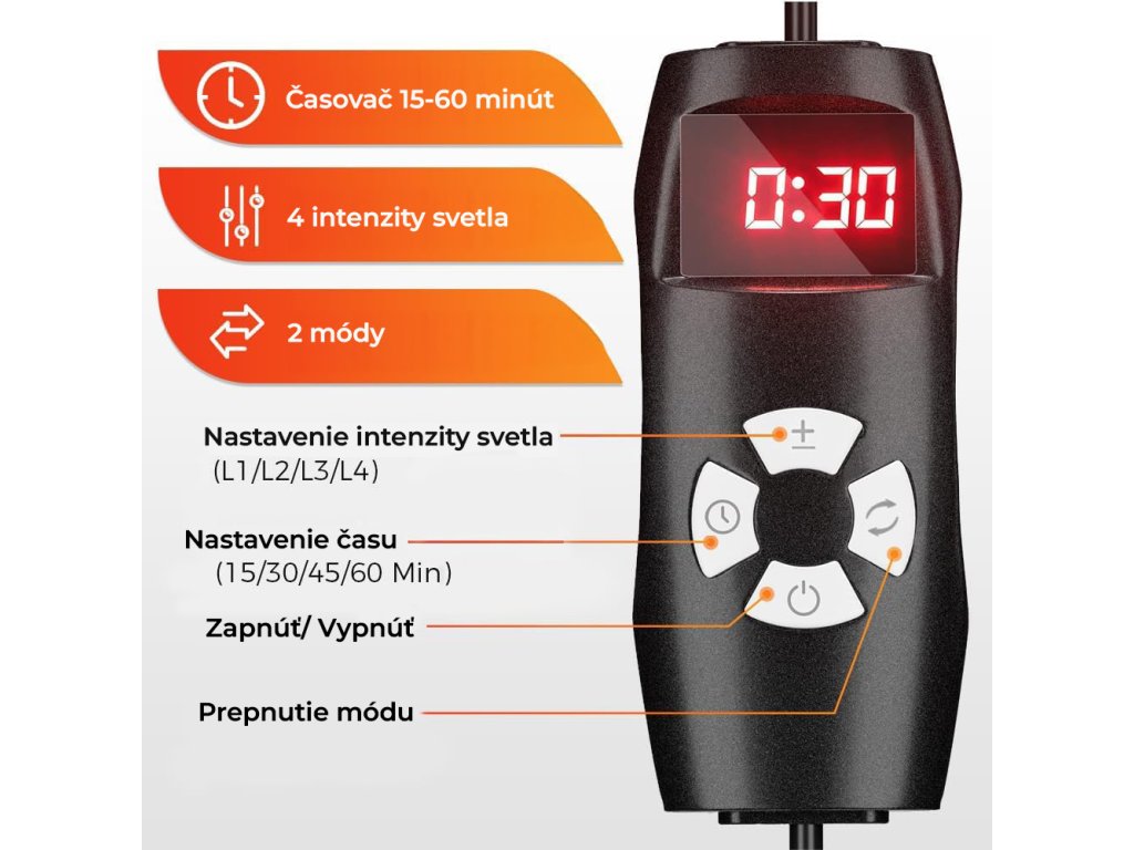 - Sila ožiarenia: 72,6mW/cm2 zo vzdialenosti 7,62cm